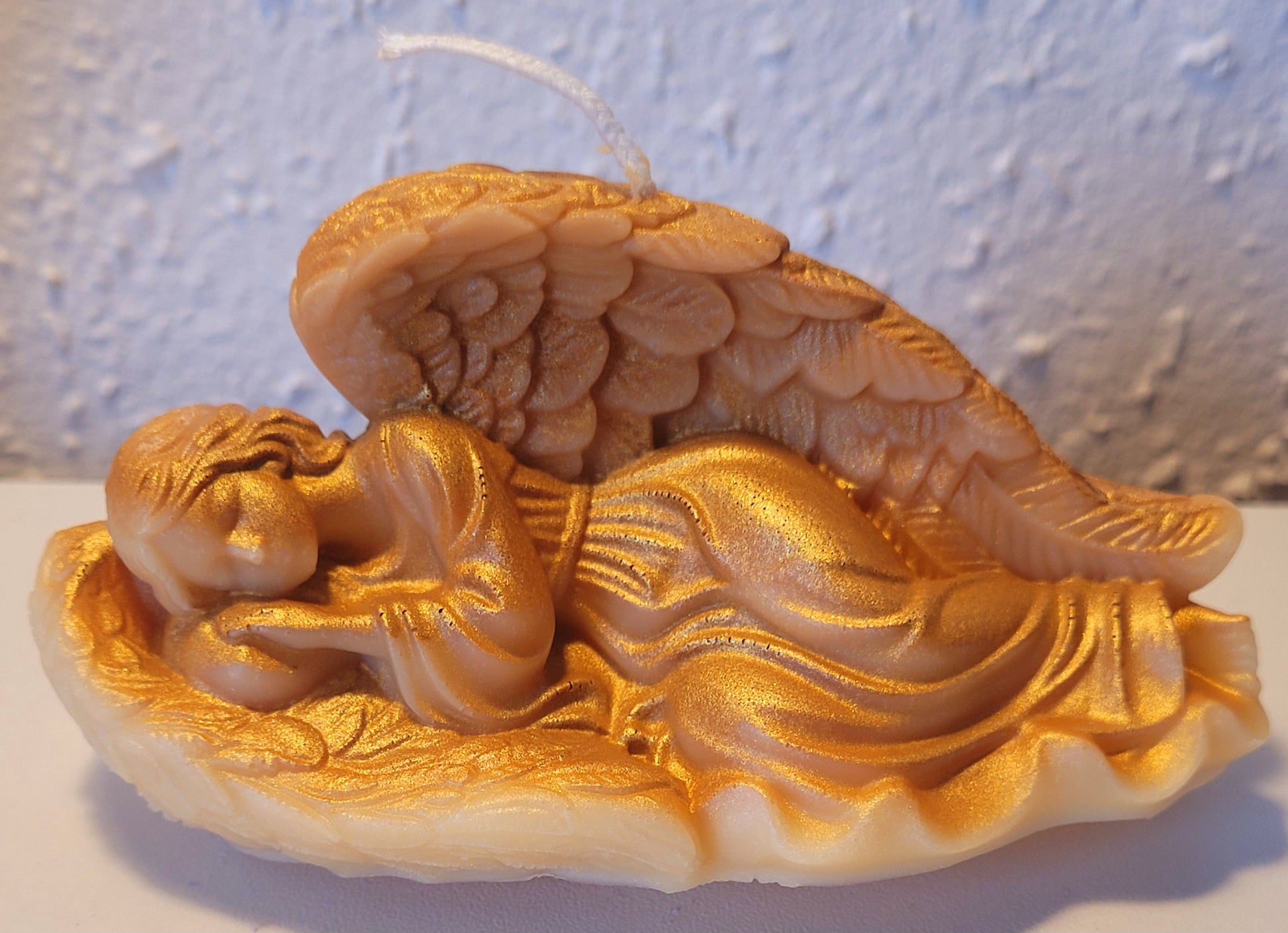 Diese zauberhafte Engelkerze wird mit viel Liebe zum Detail aus hochwertigem Wachs in einer filigranen Silikonform gegossen. Der Engel steht für Schutz, Vertrauen und innere Ruhe und bringt eine sanfte, harmonische Atmosphäre in jeden Raum.