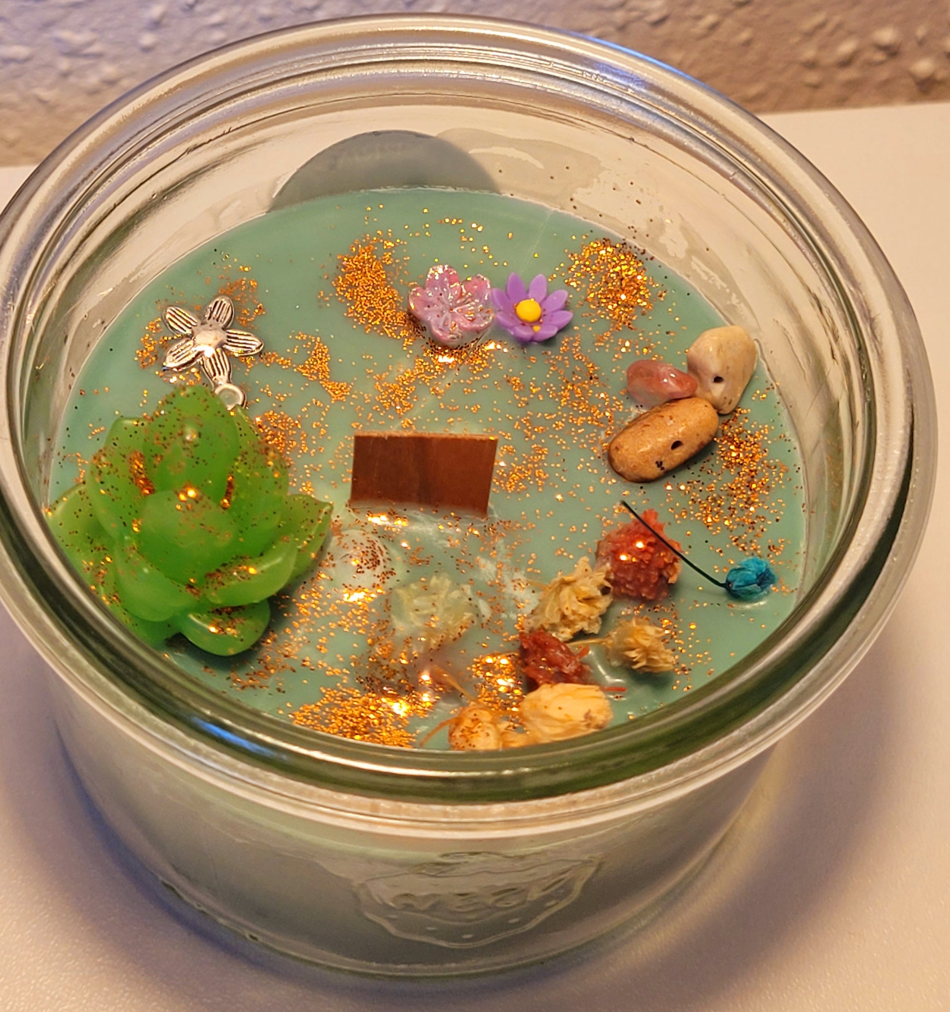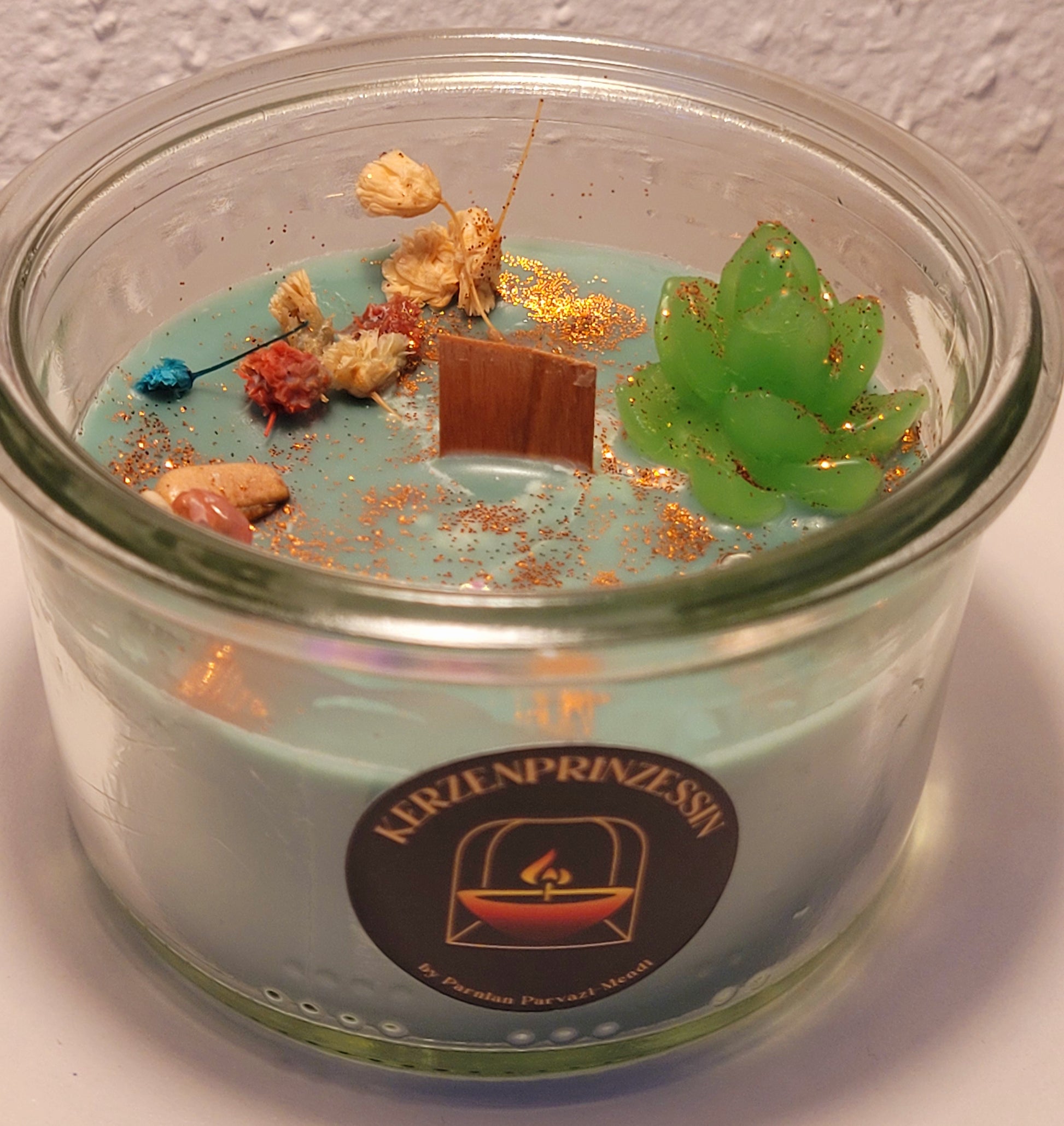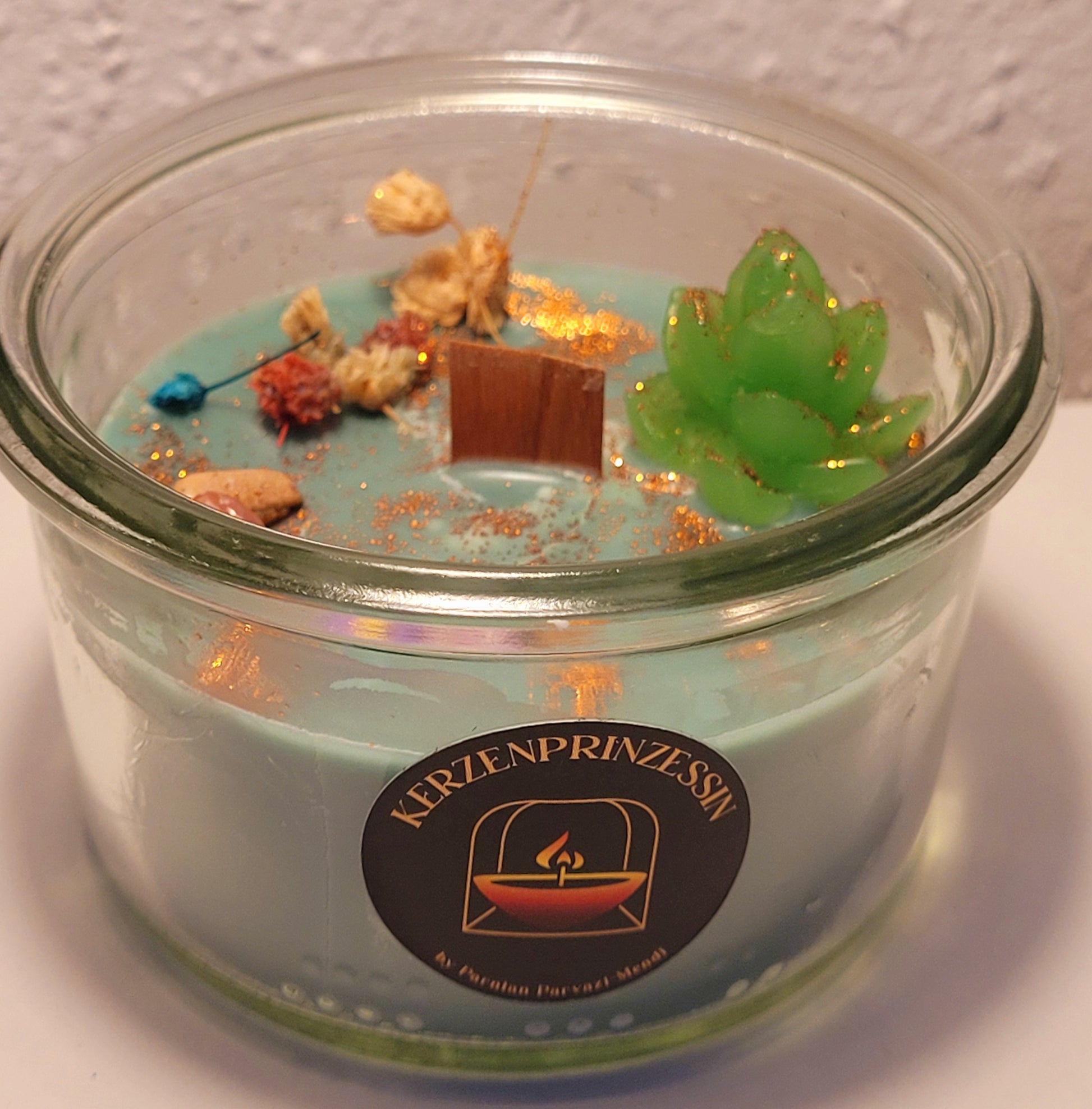 Dekorative Kerze im Glas – handgemacht und stilvoll.